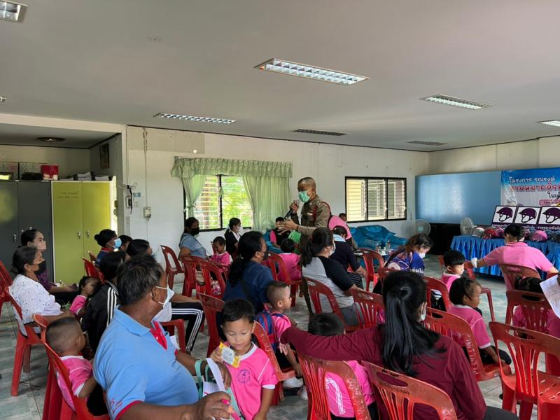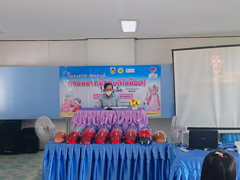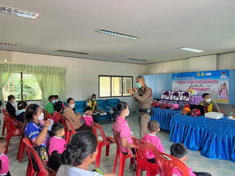 โครงการรณรงค์สวมหมวกนิรภัย (กันน็อค) ในเด็กเล็ก ประจำปี 2565 ศูนย์พัฒนาเด็กเล็กบ้านหินแฮ่