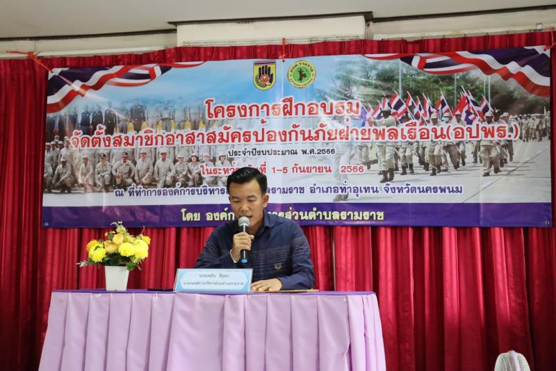 เมื่อวันที่ 1-5 กันยายน 2566 องค์การบริหารส่วนตำบลรามราช ได้จัดโครงการฝึกอบรมจัดตั้งสมาชิกอาสาสมัครป้องกันภัยฝ่ายพลเรือน (อปพร.) ประจำปีงบประมาณ พ.ศ.2566 โดยมีนายเพลิน สีสุทร นายกองค์การบริหารส่วนตำบลรามราช เป็นผู้อำนวยการศูนย์อาสาสมัครป้องกันภัยฝ่ายพลเรือน (อปพร.) มีวัตถุประสงค์เพื่อให้ผู้เข้าร่วมอบรมมีความรู้ความเข้าใจในบทบาทหน้าที่และภารกิจเกี่ยวกับงาน อปพร. และแนวทางการทำงานในรูปคณะกรรมการประสานงานฯ และพัฒนาศูนย์ อปพร. สู่ความเข้มแข็งที่ยั่งยืน มีผู้เข้าร่วมโครงการประกอบด้วยประชาชน ในพื้นที่องค์การบริหารส่วนตำบลรามราช จำนวน 34 คน ณ องค์การบริหารส่วนตำบลรามราช