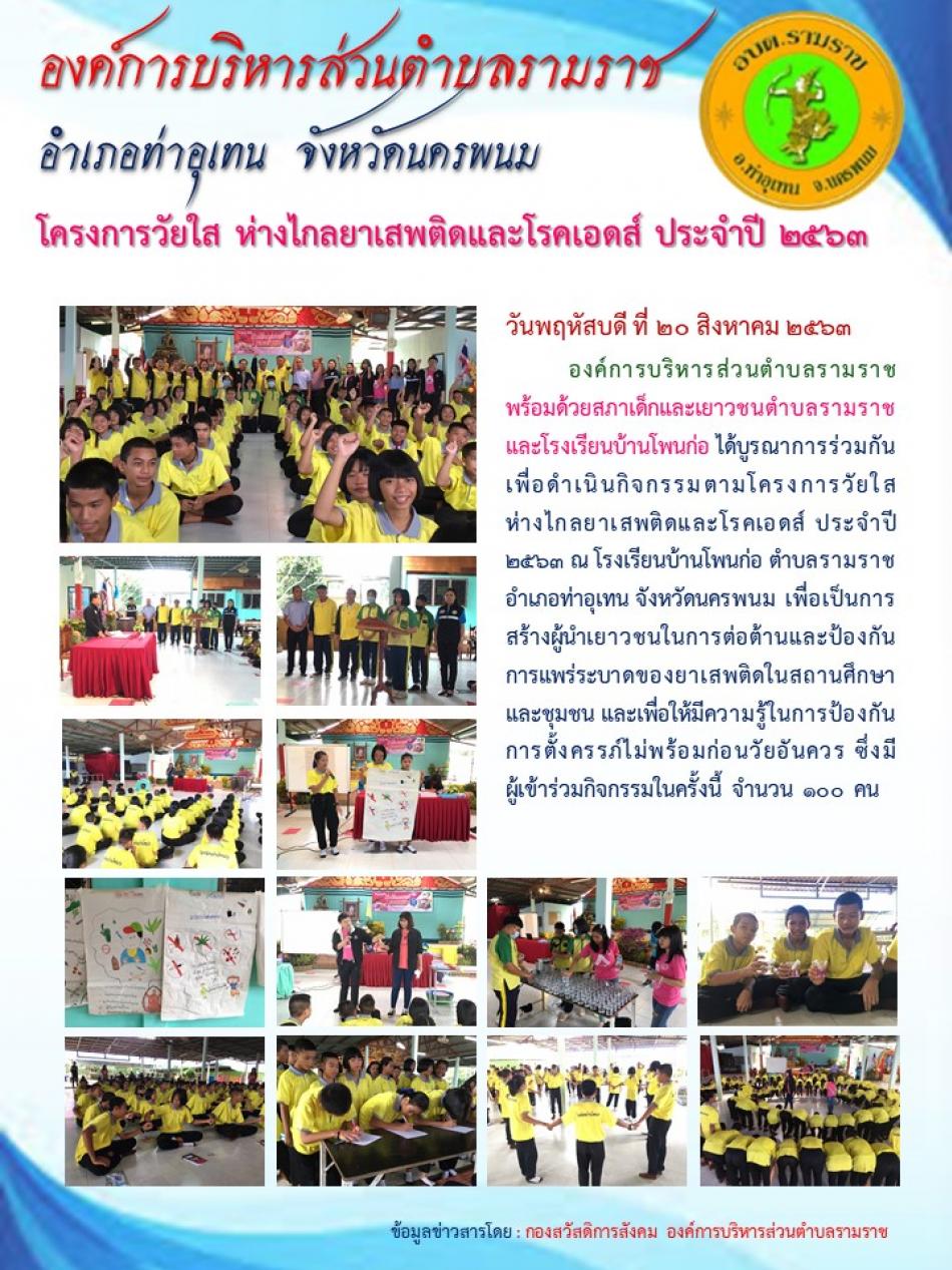 โครงการวัยใส ห่างไกลยาเสพติดและโรคเอดส์ ประจำปี 2563 [20 สิงหาคม 2563]