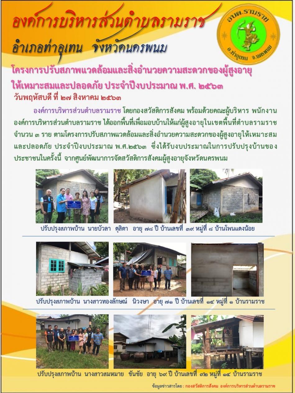 โครงการปรับสภาพแวดล้อมและสิ่งอำนวยความสะดวกของผู้สูงอายุ [27 สิงหาคม 2563]