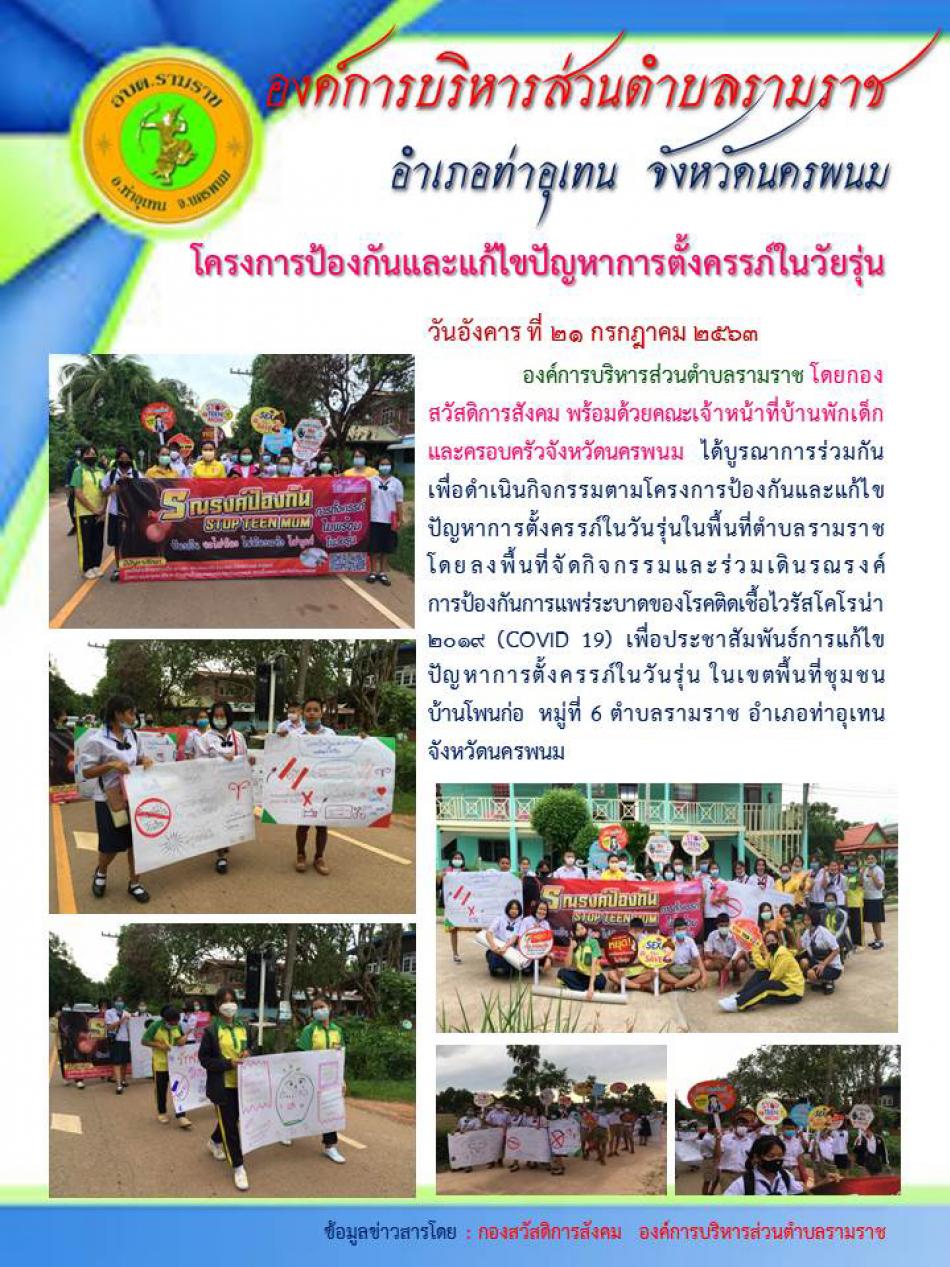 โครงการป้องกันและแก้ไขปัญหาการตั้งครรภ์ในวันรุ่น (เดินรณรงค์) 2563 [22 กรกฎาคม 2563]