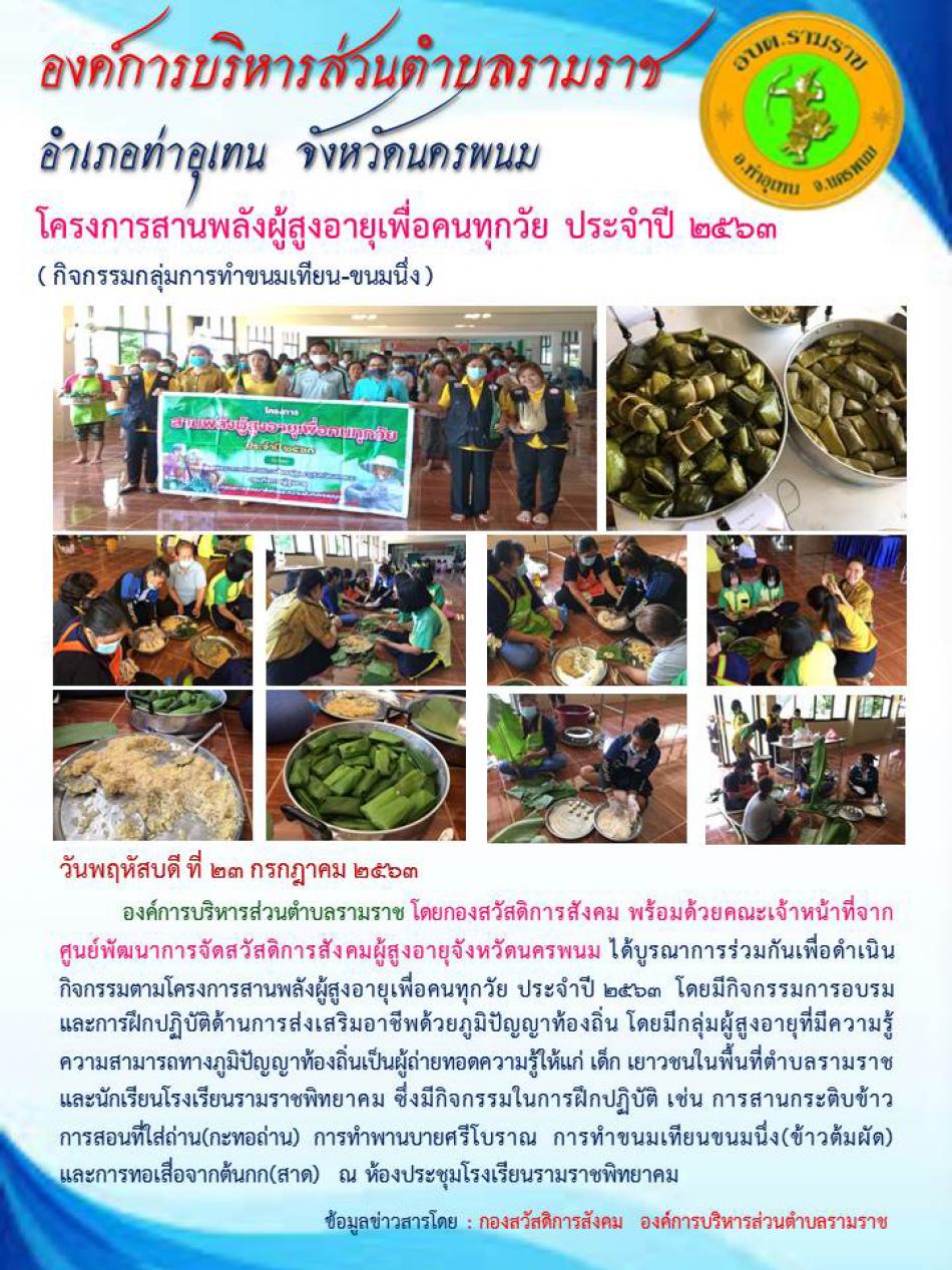 โครงการสานพลังผู้สูงอายุเพื่อคนทุกวัย ประจำปี 2563 (กิจกรรมการทำขนมเทียน) [25 กรกฎาคม 2563]