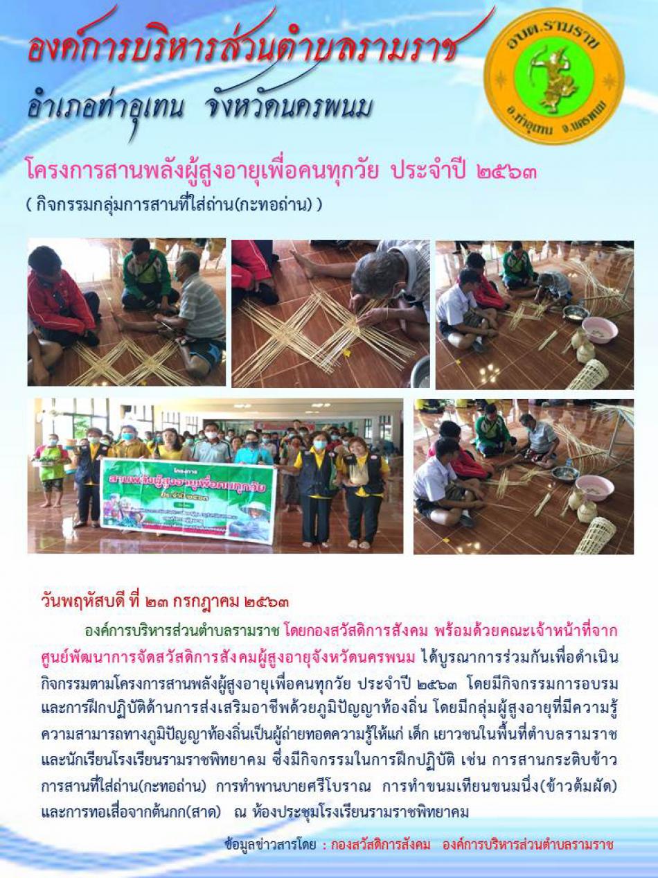 โครงการสานพลังผู้สูงอายุเพื่อคนทุกวัย ประจำปี 2563 (กิจกรรมการสานกระติบข้าว) [25 กรกฎาคม 2563]