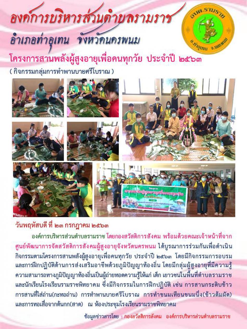 โครงการสานพลังผู้สูงอายุเพื่อคนทุกวัย ประจำปี 2563 (กิจกรรมทำพานบายศรีโบราณ ) [25 กรกฎาคม 2563]