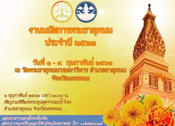 ขอเชิญเที่ยวงาน นมัสการพระธาตุพนม ประจำปี 2563 ระหว่างวันที่ 1- 9 กุมภาพันธ์ 2563