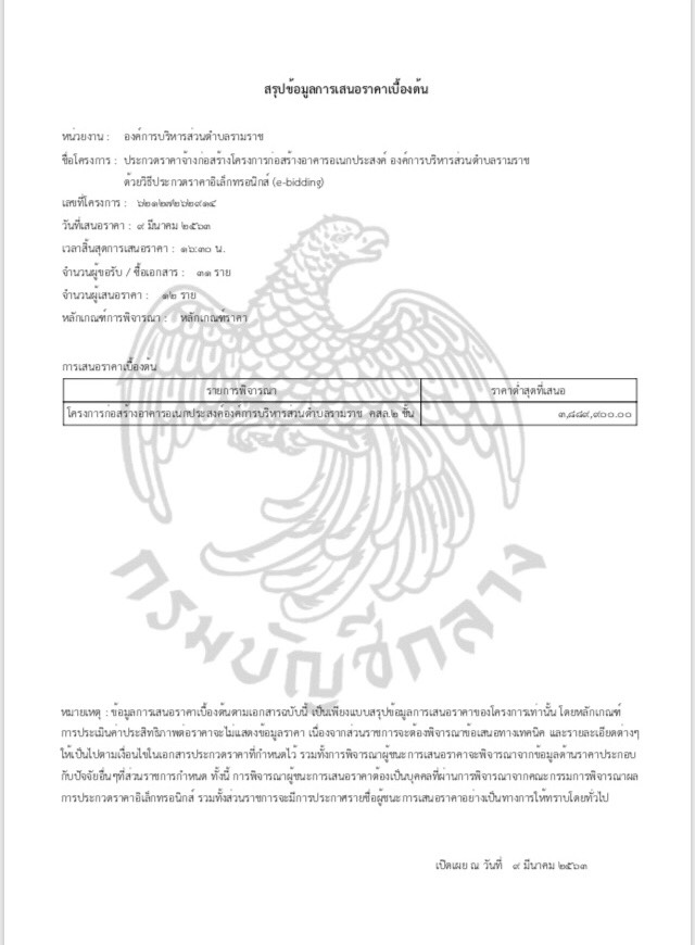 สรุปข้อมูลโครงการก่อสร้างอาคารอเนกประสงค์องค์การบริหารส่วนตำบลรามราช คสล.2ชั้น