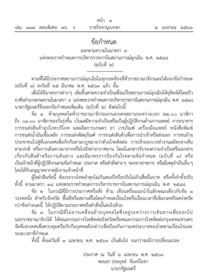 ข้อกำหนดออกตามความในมาตรา 9 แห่งพระราชกำหนดการบริหารราชการในสถานการณ์ฉุกเฉิน พ.ศ.2548 (ฉบับที่ 2)