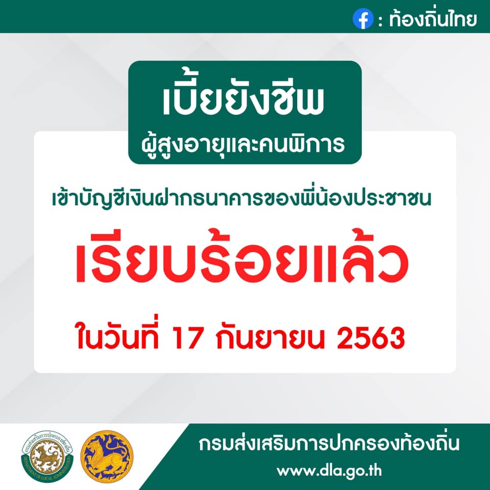 ประกาศกรมส่งเสริมการปกครองท้องถิ่น เรื่องเบี้ยยังชีพผู้สูงอายุและคนพิการ