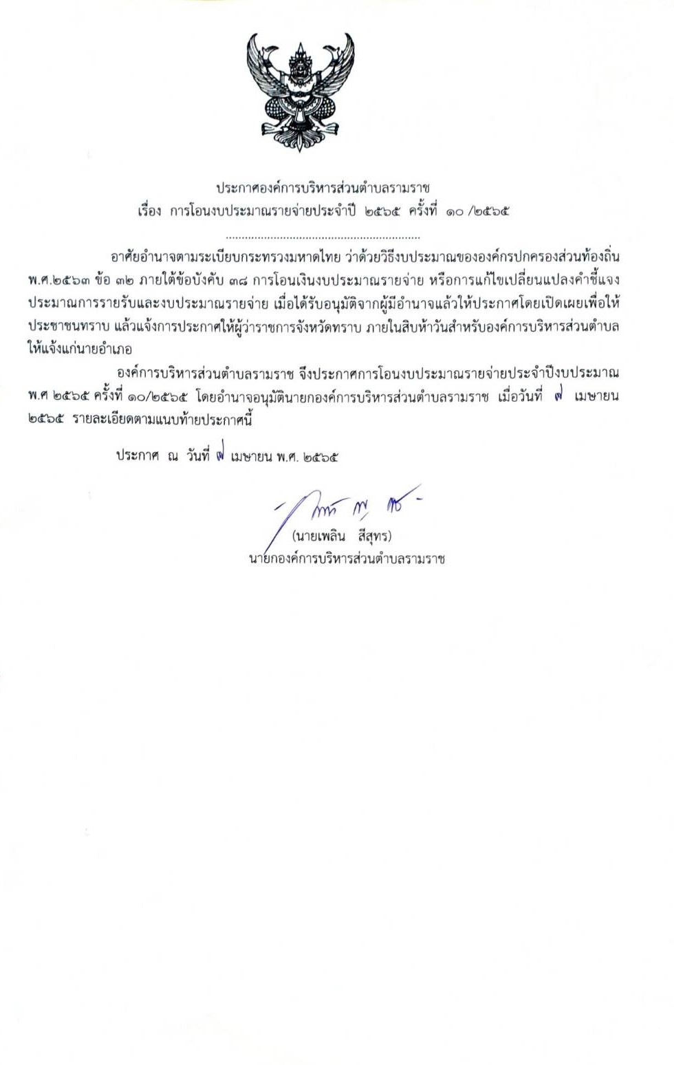 บัญชีโอนเงินงบประมาณรายจ่าย ประจำปีงบประมาณ ครั้งที่ 10.2565