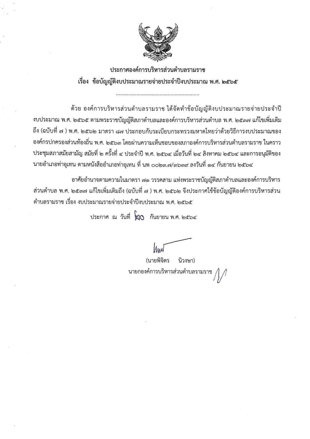 ข้อบัญญัติงบประมาณรายจ่ายประจำปีงบประมาณ พ.ศ. 2565