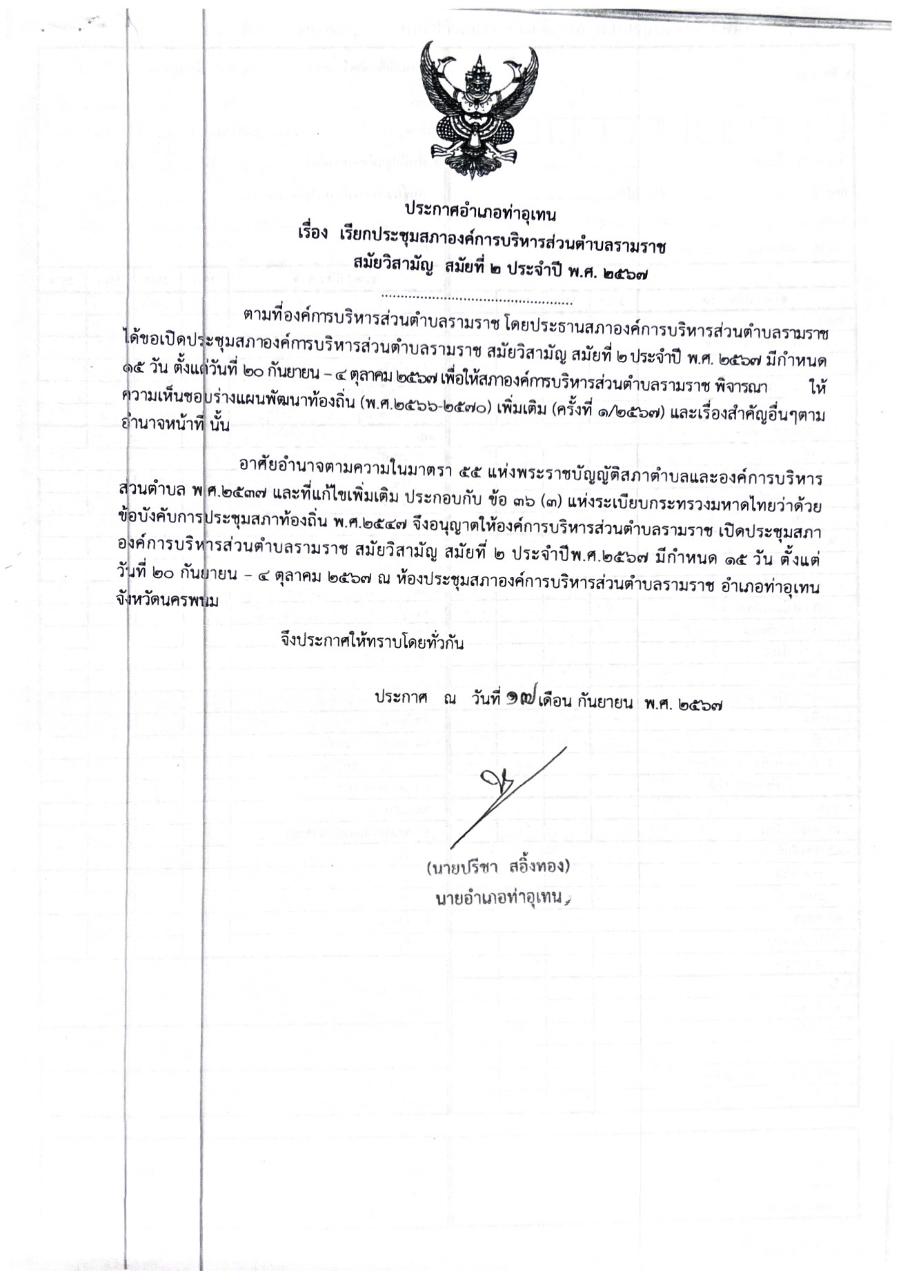 ประกาศอำเภอท่าอุเทน เรื่อง เรียกประชุมสภาองค์การบริหารส่วนตำบลรามราช สมัยวิสามัญ สมัยที่ 2 ประจำปี พ.ศ.2567