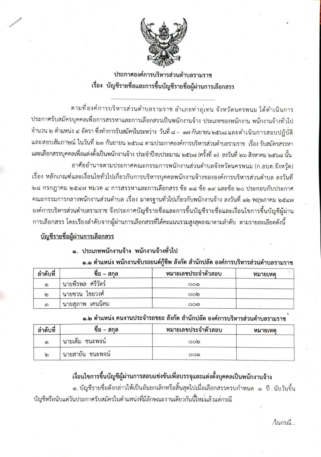 ประกาศองค์การบริหารส่วนตำบลรามราช เรื่อง บัญชีรายชื่อและการขึ้นทะเบียนรายชื่อผ่านการคัดเลือกสรร