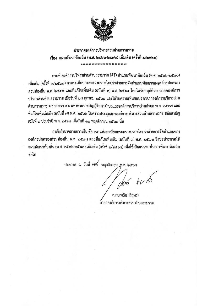 แผนพัฒนาท้องถิ่น (พ.ศ. 2566-2570) เพิ่มเติม (ครั้งที่ 1/2568)