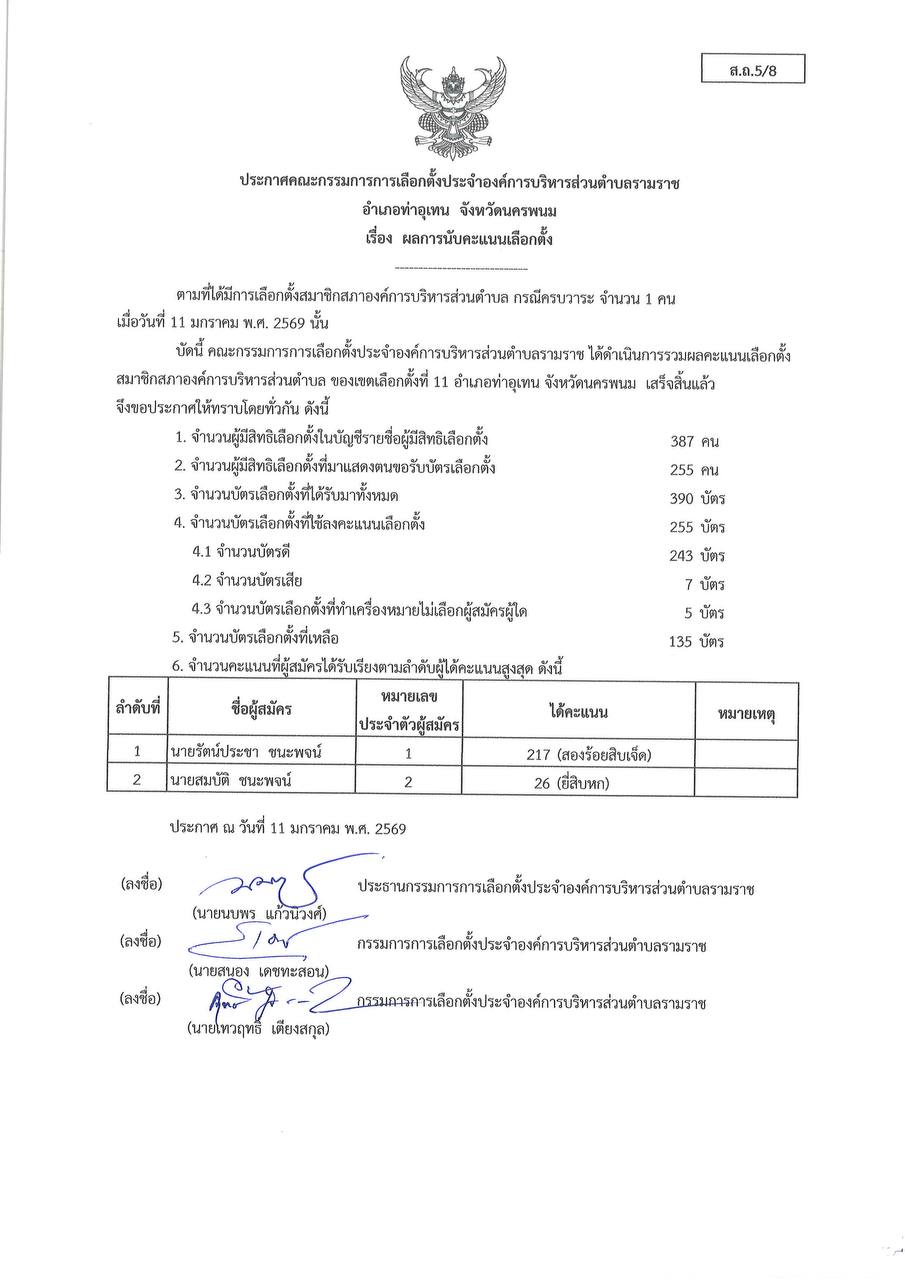 ประกาศคณะกรรมการการเลือกตั้งประจำองค์การบริหารส่วนตำบลรามราช เรื่อง ผลการนับคะแนนเลือกตั้งสมาชิกสภาองค์การบริหารส่วนตำบลรามราช เขตเลือกตั้งที่ 11