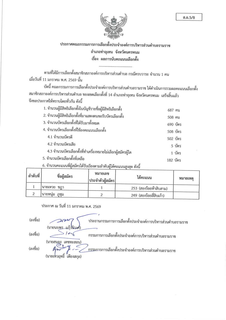 ประกาศคณะกรรมการการเลือกตั้งประจำองค์การบริหารส่วนตำบลรามราช เรื่อง ผลการนับคะแนนเลือกตั้งสมาชิกสภาองค์การบริหารส่วนตำบลรามราช เขตเลือกตั้งที่ 14