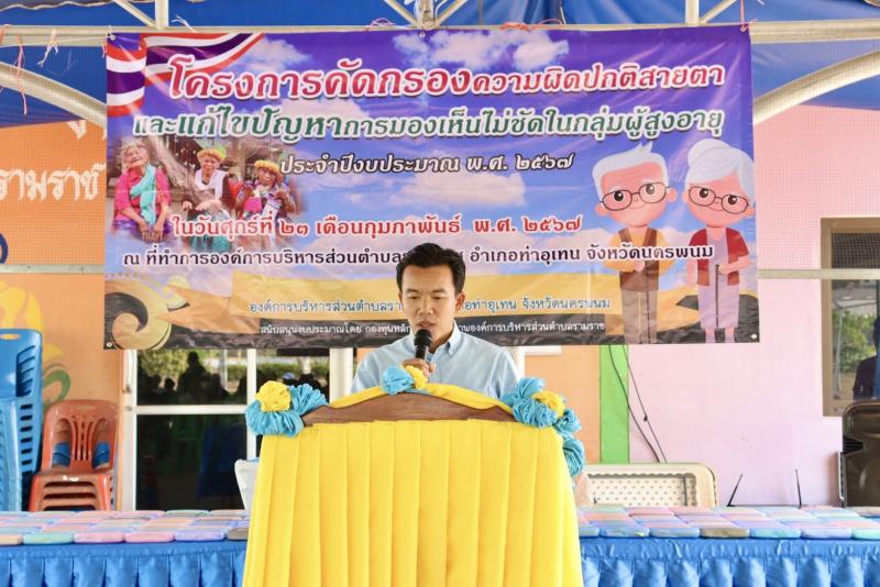 เมื่อวันที่ 5 มีนาคม 2567 นายเพลิน สีสุทร นายกองค์การบริหารส่วนตำบลรามราช พร้อมด้วยคณะผู้บริหาร พนักงานส่วนตำบล และพนักงานจ้าง ได้มอบแว่นตาให้กับผู้สูงอายุตำบลรามราช ตามโครงการคัดกรองความผิดปกติสายตาและแก้ไขปัญหาการมองเห็นไม่ชัดในกลุ่มผู้สูงอายุ ประจำปีงบประมาณ พ.ศ.2567 ณ องค์การบริหารส่วนตำบลรามราช อำเภอท่าอุเทน จังหวัดนครพนม
