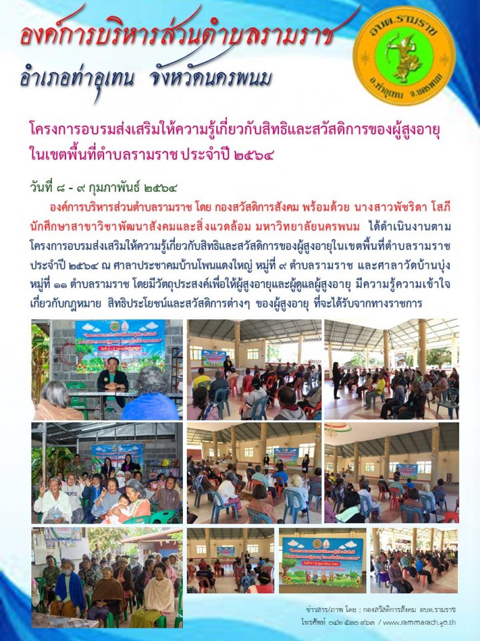 โครงการอบรมส่งเสริมให้ความรู้เกี่ยวกับสิทธิและสวัสดิการของผู้สูงอายุในเขตพื้นที่ตำบลรามราช ประจำปี 2564 [10 กุมภาพันธ์ 2564]