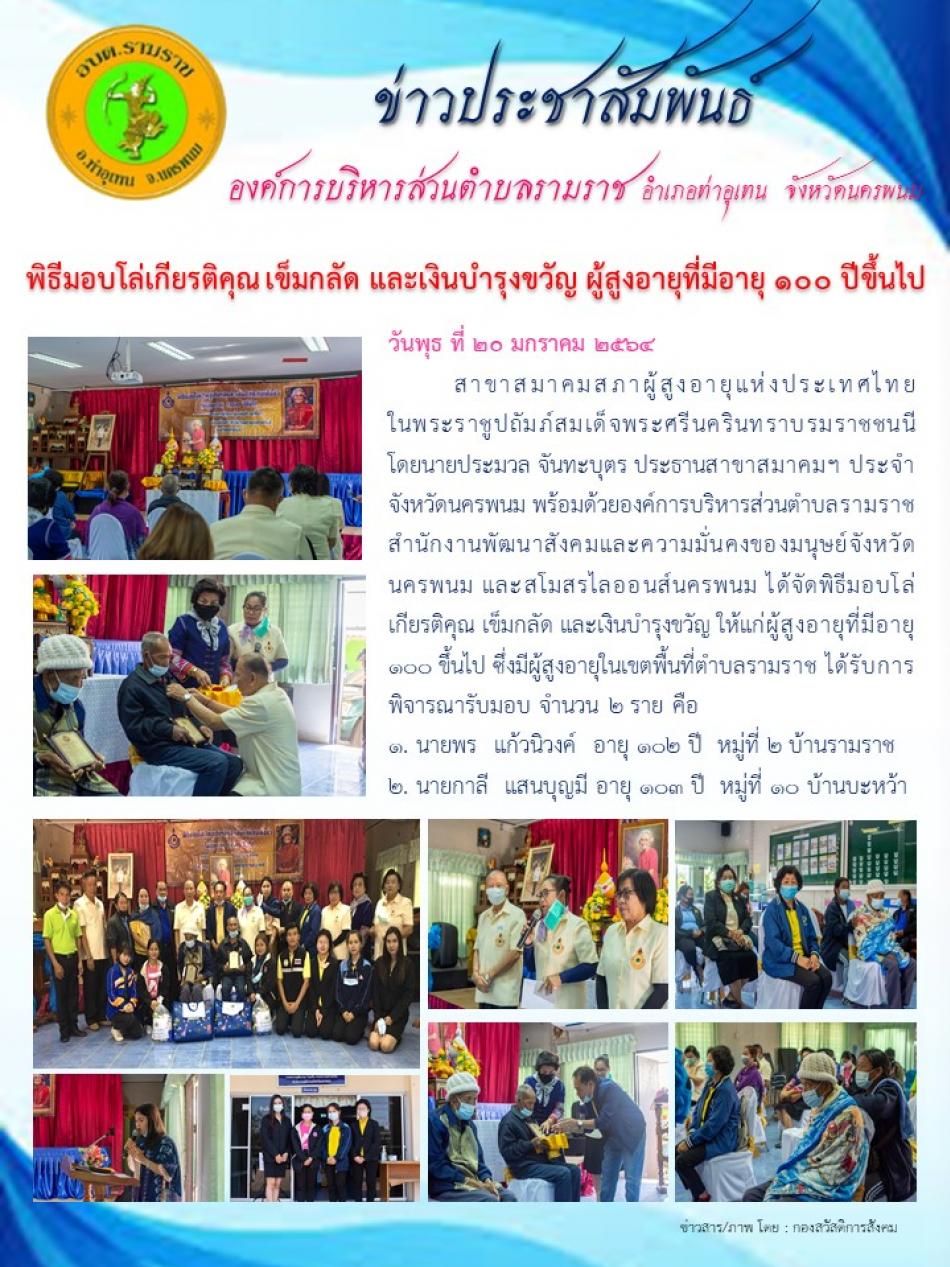 พิธีมอบโล่เกียรติคุณ เข็มกลัด และเงินบำรุงขวัญ ผู้สูงอายุที่มีอายุ 100 ปีขึ้นไป [20 มกราคม 2564]