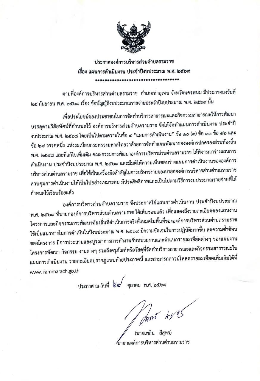 แผนการดำเนินงาน ประจำปีงบประมาณ พ.ศ. 2569